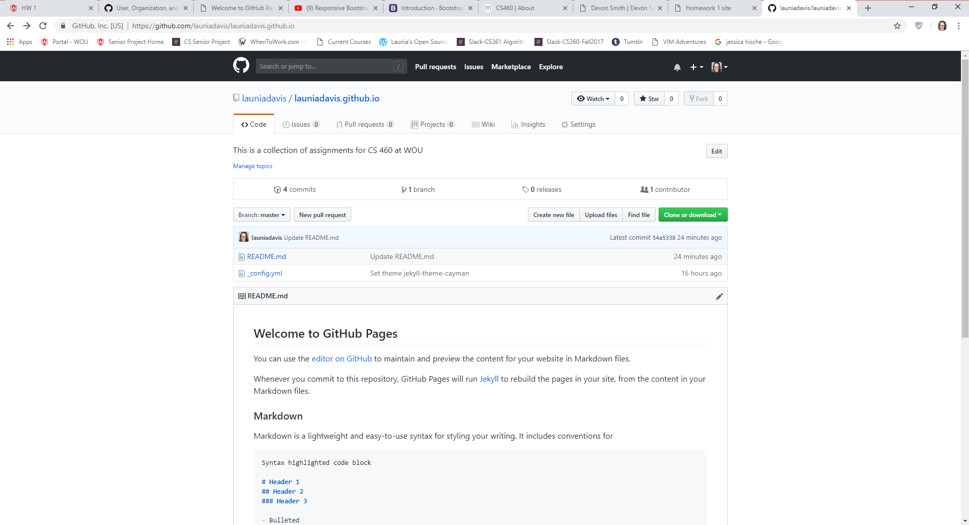 Below is an image of my GitHub account along with the creation of my GitHub Pages.