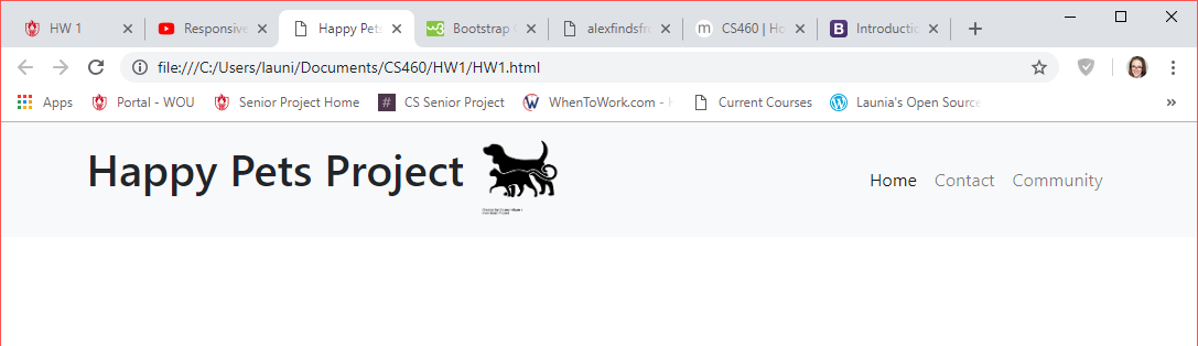I then switched my focus to creating the column layouts using bootsrtap. On my website home page, HW1.html, I have used both a single and a three column layout. The top container of the home page is in a single column layout with a header and paragraph element inside.